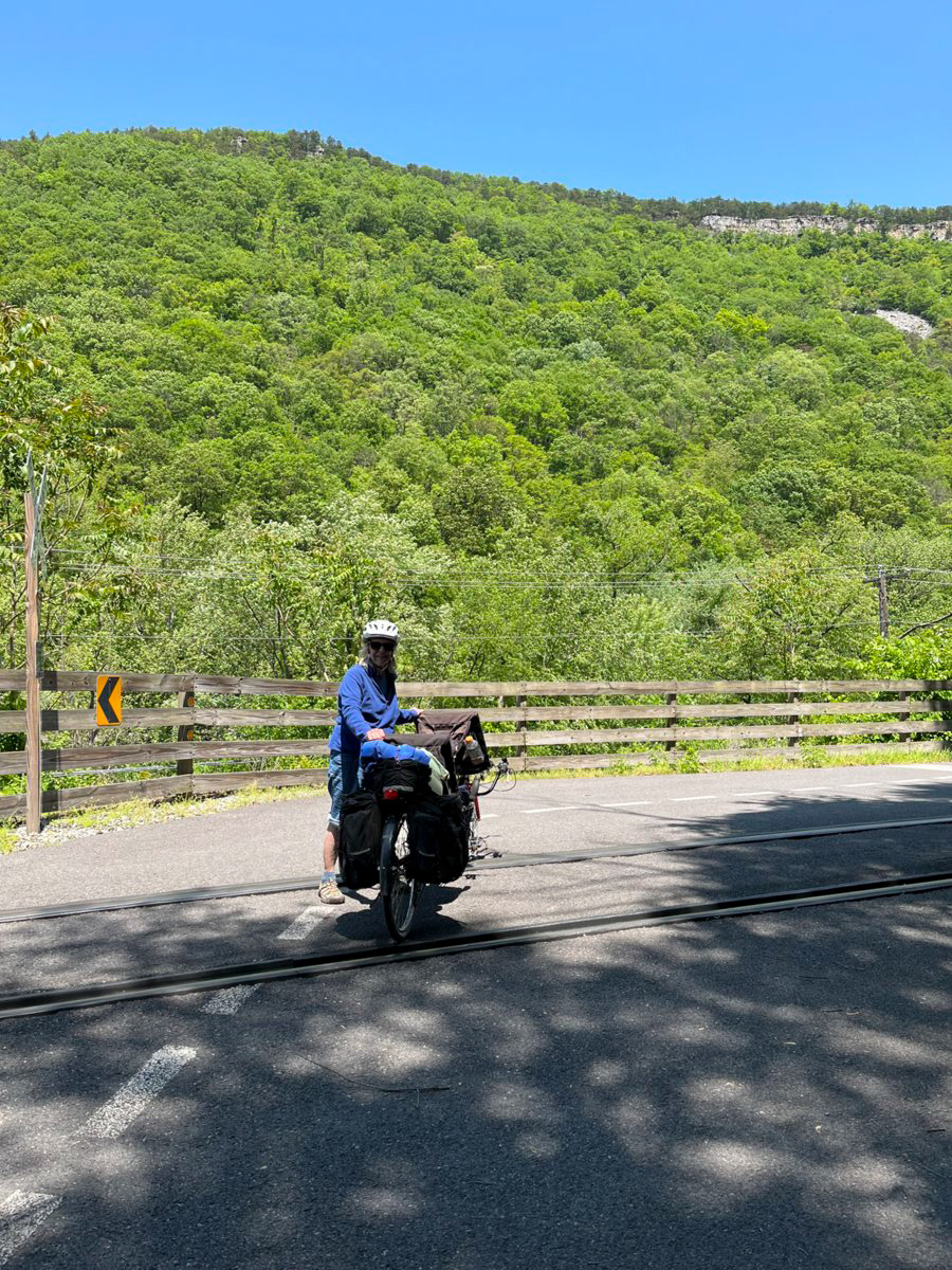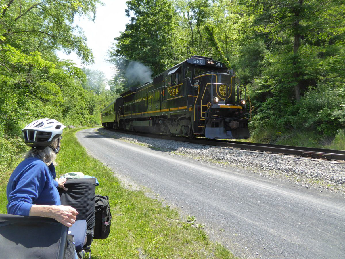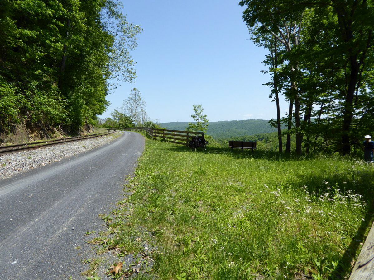 From Cumberland to Frostburg, MD we travelled parallel to an active scenic railway. Normally it is a steam engine on this trip but it is under repair I was told.