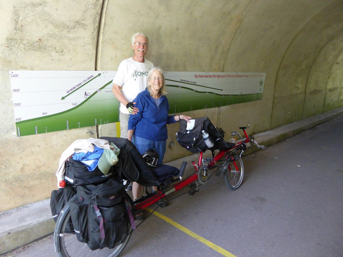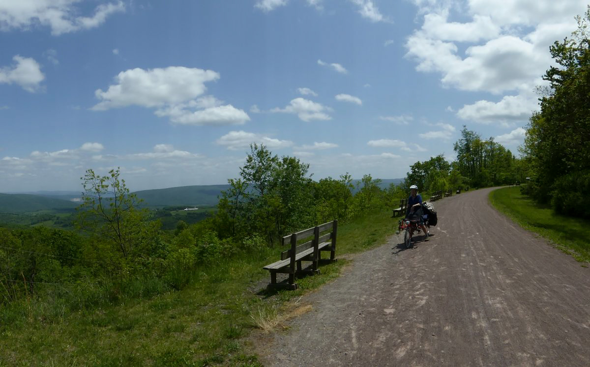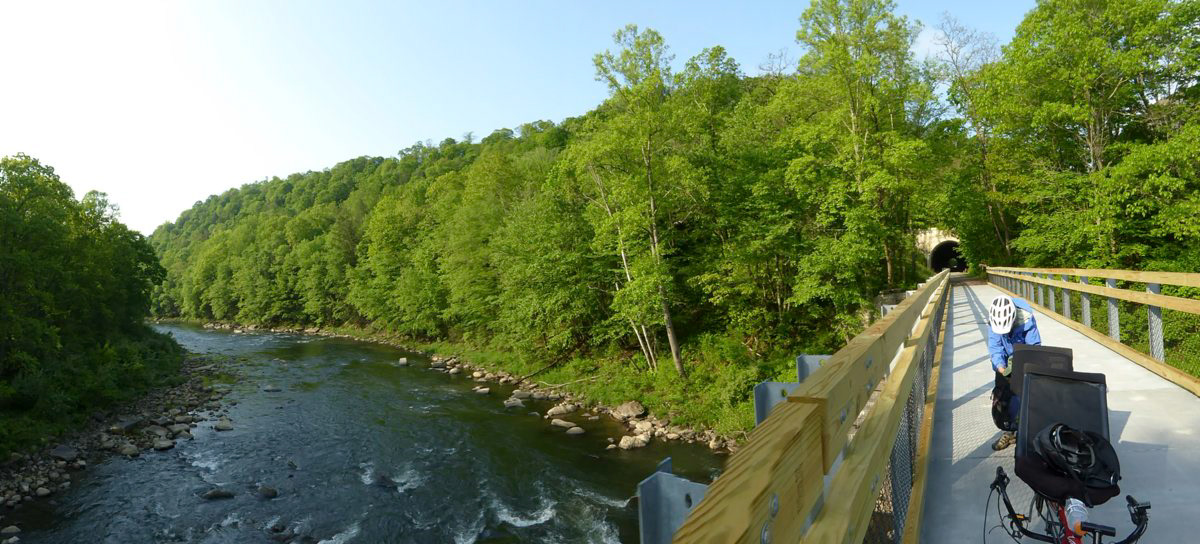 The trip started with a two and a half hour drive to Cumberland, MD where the Great Allegheny Passage and C & O Canal trails meet. We parked the car under the interstate and headed towards Meyersdale, PA 32 miles away, 24 of which were uphill. Being an old railroad track the up hill was not steep, nevertheless, there was no coasting.